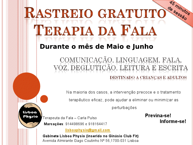 Nos meses de Maio e Junho, aproveite e faça o rastreio GRATUITO de Terapia da Fala! Crianças e adultos podem e devem marcar o seu rastreio!